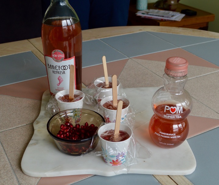 The next pop I wanted to try was a tart take on a raspberry popsicle. But instead of raspberries, I used pomegranate juice and seeds. Light, refreshing, and paired great with sparkling rosé!
