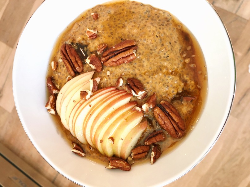 When ready, eat as is or top with whatever you want! I went with sliced apple, pecans, and more maple syrup.