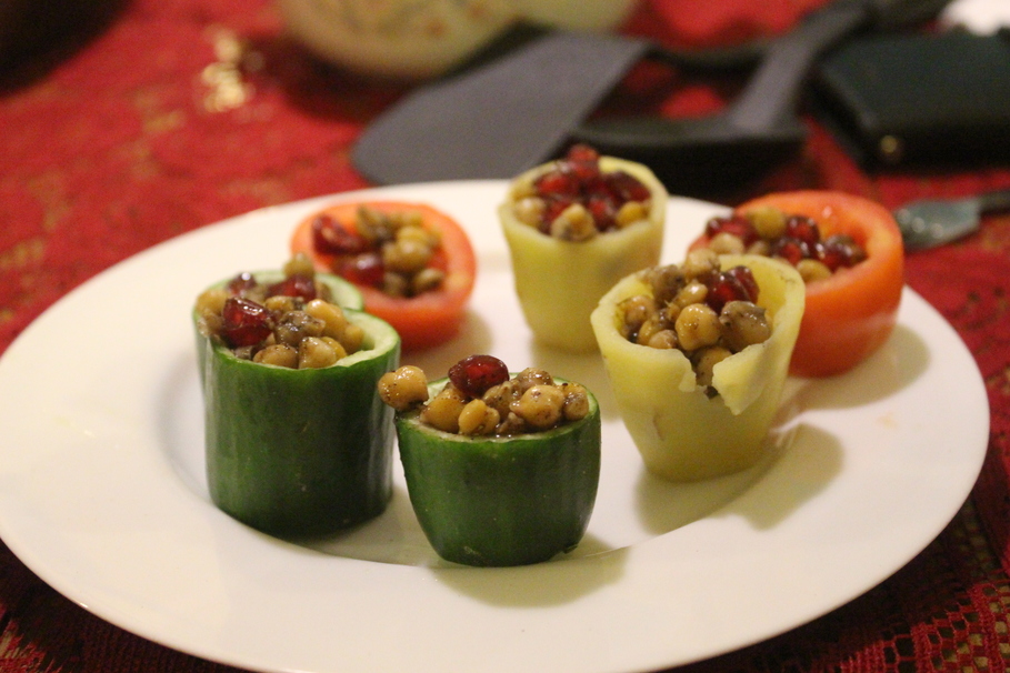 Fill up the hollow vegetables with the above filling. Finish it off by adding lemon juice. Serve cold.