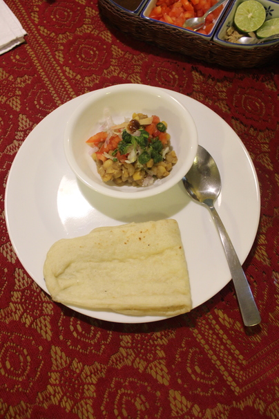 Garnish with chopped onions, tomatoes, garlic, green chilies, coriander leaves and lemon juice.