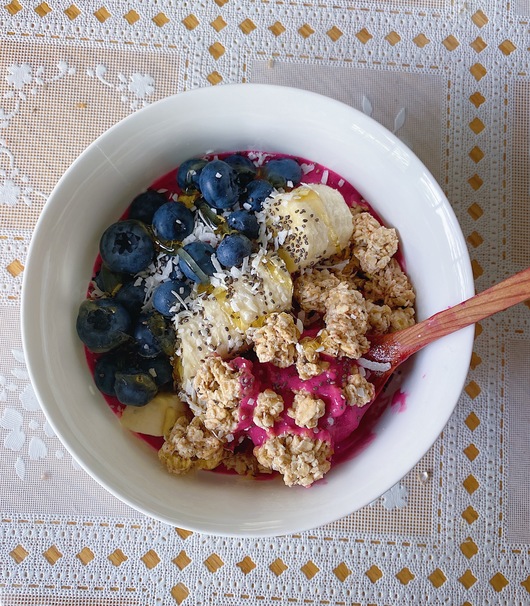 Who doesn't love a smoothie bowl, especially with summer coming up? A nice, refreshing bowl topped with granola and fruit will hit the spot, and adding a scoop of protein powder won't hurt either.