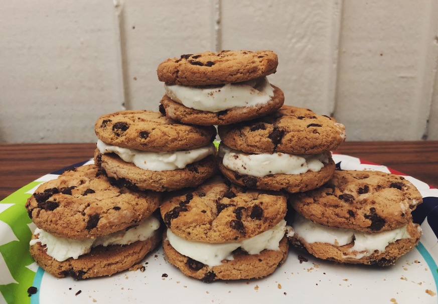 Take a small scoop of ice cream and place between two pre-made cookies, and repeat for however many cookies you have. That's it!