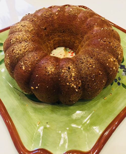 Pour batter in cake pan that is greased with oil and flour. Bake in oven for 30 minutes and until golden brown. Enjoy!