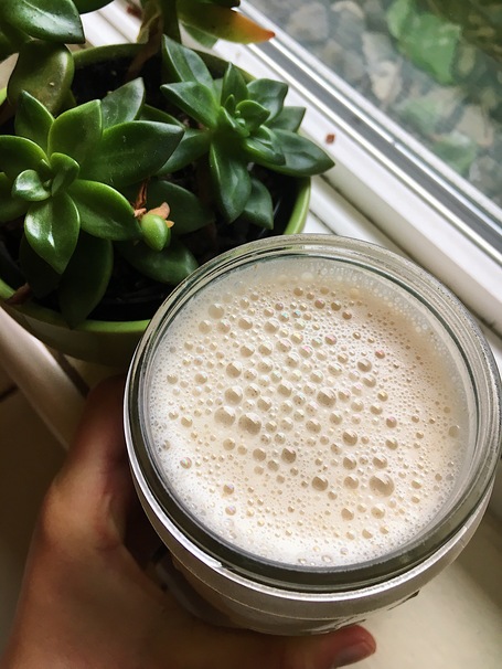 Pour your fresh oat milk into a large mason jar and enjoy! You can also choose to strain the milk through a fine mesh bag if you want less oat pulp in your milk.