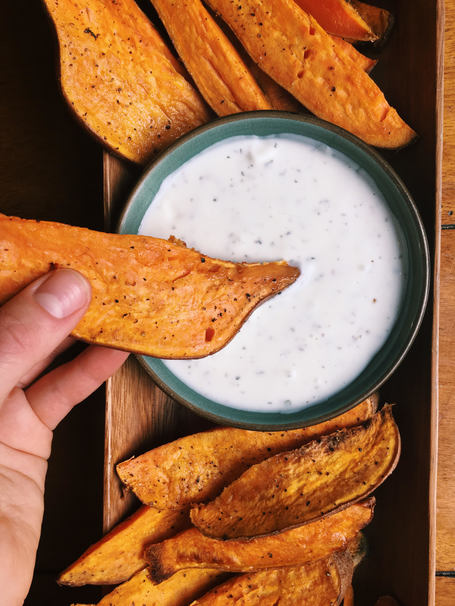 Sweet Potato Wedges with Yogurt Herb Dip