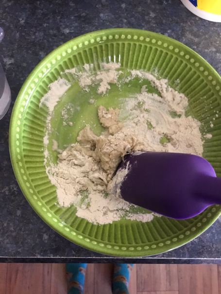 Separate dough into 2-3 smaller chunks. If the inside of the dough appears powdery-y, add another teaspoon of water and mix.