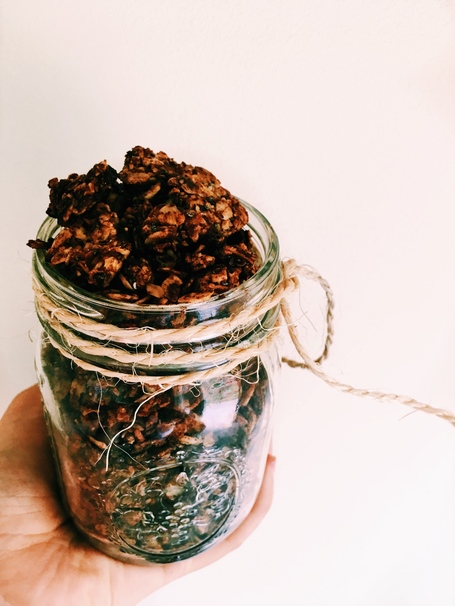 For even more yummy chocolatey deliciousness, chop up some more dark chocolate and sprinkle it on top while the granola is cooling!