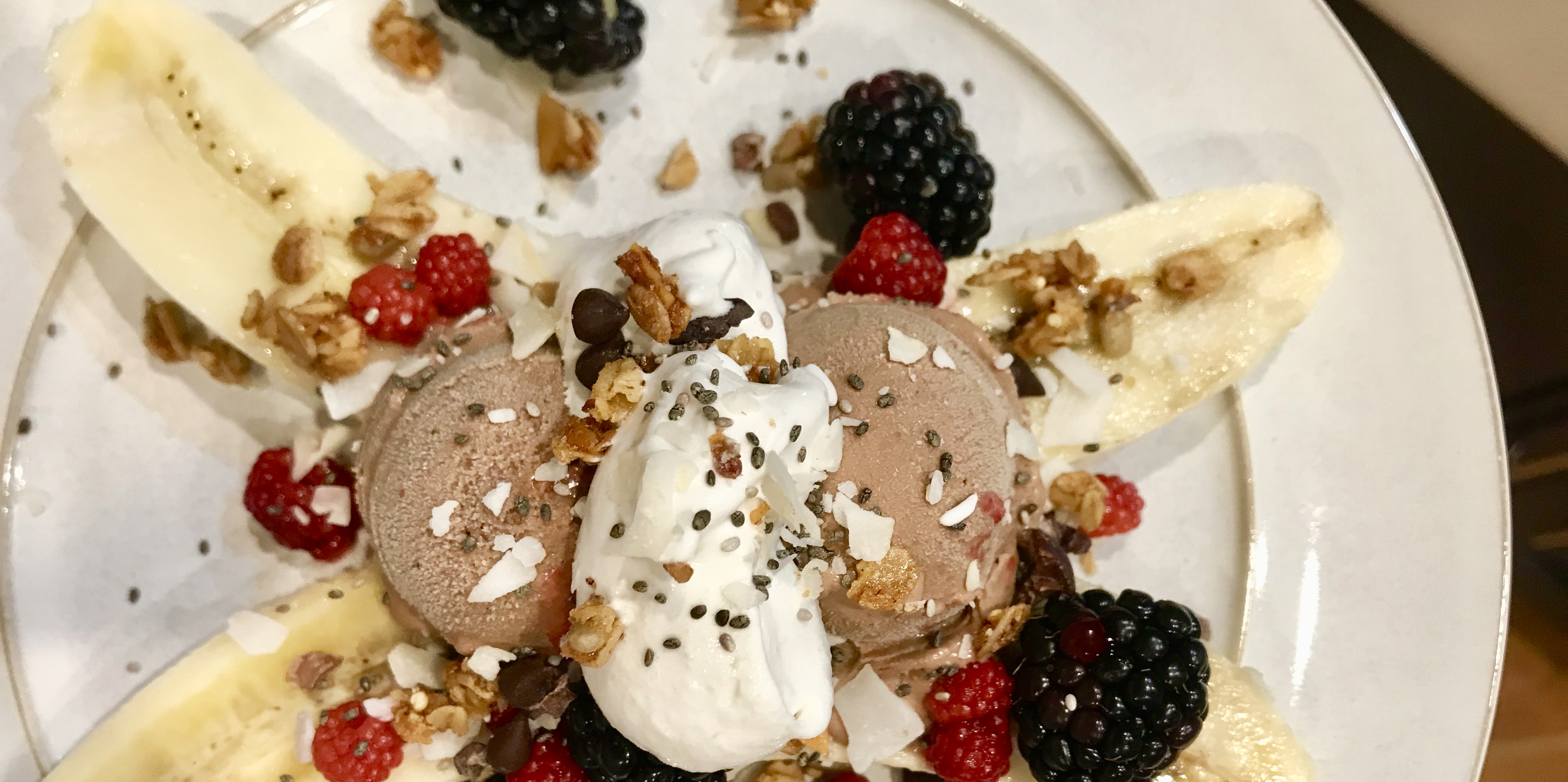 My sister wanted a classic ice cream cake. My mom went ahead and ordered it, but I wanted a healthy and yummy alternative to that dessert (being a nutrition major.) After coming across a banana split on social media, (Sweetberries Frozen Custard & Eatery's picture) I was inspired to make one myself -- but put my own spin on it!