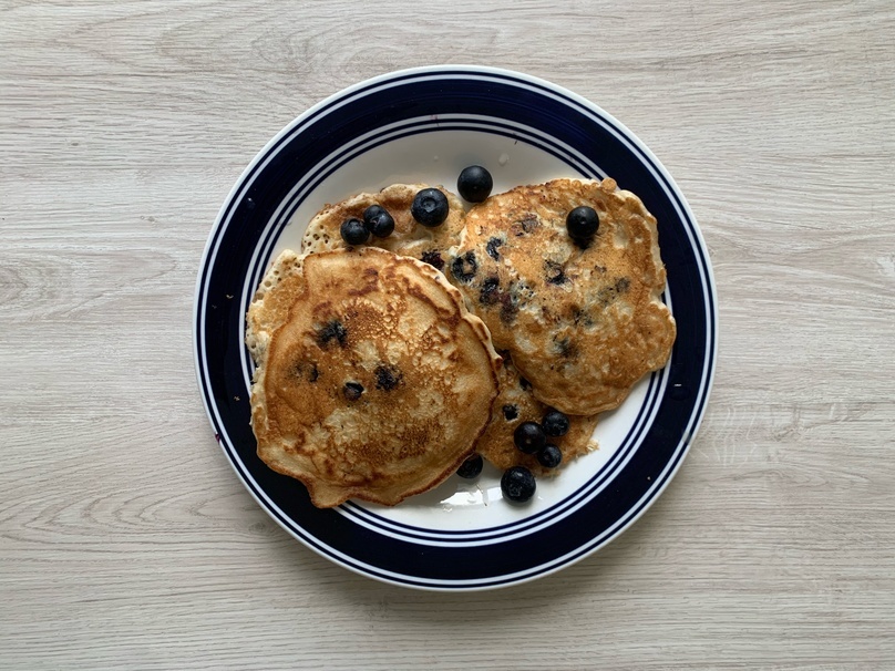 Add as many chocolate chips or blueberries as you’d like into your pancake mix!