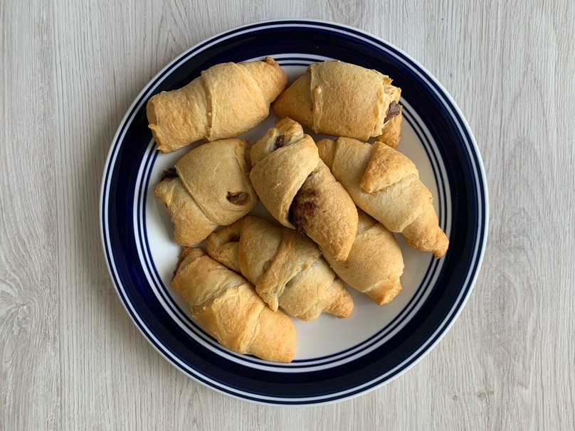 For four of the crescent triangles, add a tablespoon of Nutella in the middle. For the four remaining triangles, add a tablespoon of cream cheese in the middle.