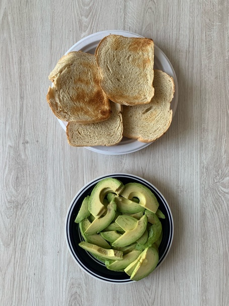 Once your bread is toasted, place a couple of avocado slices on top and sprinkle some salt to taste.