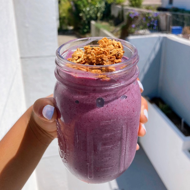 Especially in the LA summer heat, I have made some variations of this smoothie more times than I can count: quick, healthy, and delicious, there is nothing quite like this bright berry smoothie to kickstart your morning. You will see that this recipe leaves a lot of room for personal choice, from the addition of greens to your desired variety of nut butter. The only non negotiable item is the dates — they give an unparalleled natural sweetness and texture. . Feel free to top with homemade granola, your favorite berries, and whatever toppings you desire and turn it into a smoothie bowl. If you would like another smoothie variation, try my recipe for this peanut butter oat smoothie.