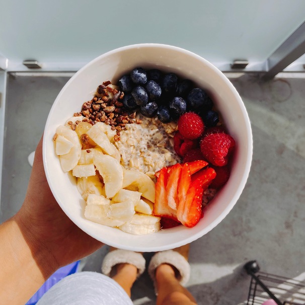 This is truly the perfect college breakfast: quick, filling, portable, and delicious. Simply put all the ingredients in a jar, stir, and leave overnight in the fridge, and *voila*, you will wake up to a transformed bowl of oats that is cream, refreshing, and wonderfully thick. Top with bananas, berries, nuts, honey, or whatever your heart desires.