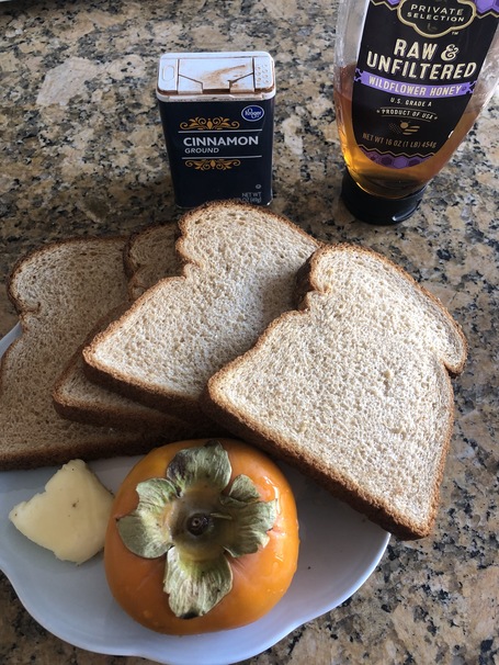 Dice up the persimmon. Place the butter into a pan at medium heat. Once melted, add in persimmon, cinnamon and honey. Cook for 8-10 minutes or until the moisture from the persimmon has evaporated.