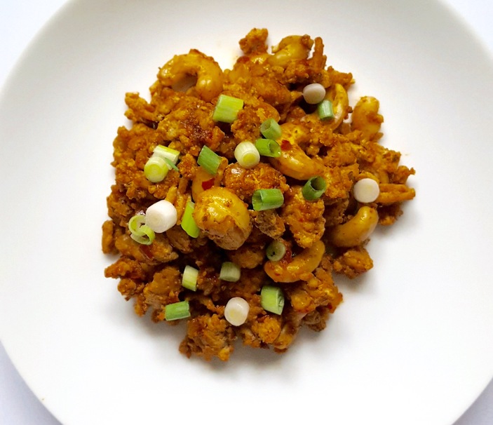 Cashews are high in monounsaturated and polyunsaturated fats, which are good for lowering cholesterol, helping heart disease and reducing stroke risks. Using the cashews with the ground chicken creates not only a delicious meal, but a healthy one too. It's high in protein, low in carbohydrates and the cashews are high vitamins and minerals.