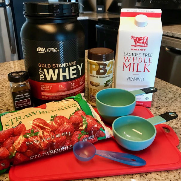 This healthy smoothie takes only a few minutes to make and is perfect for quick, on-the-go refueling or meal prep for the days ahead. Whether it is morning, afternoon, or evening, there is never a bad time for a smoothie that satisfies your peanut butter and jelly sandwich cravings. Many of the ingredients I used can be substituted by similar ingredients of different brands. The suggested servings of each ingredient can also be adjusted to your liking. I use a Nutri Ninja blender, but any blender should do the job just fine. Don't have a blender? Consider purchasing a Blender Bottle and shake up the recipe in a matter of seconds. Be mindful that large ingredients such as the strawberries will need to be chopped to best dissolve in the bottle. Find what works best for you! You can enjoy this smoothie on your own or even go halfsies and share it with a friend.