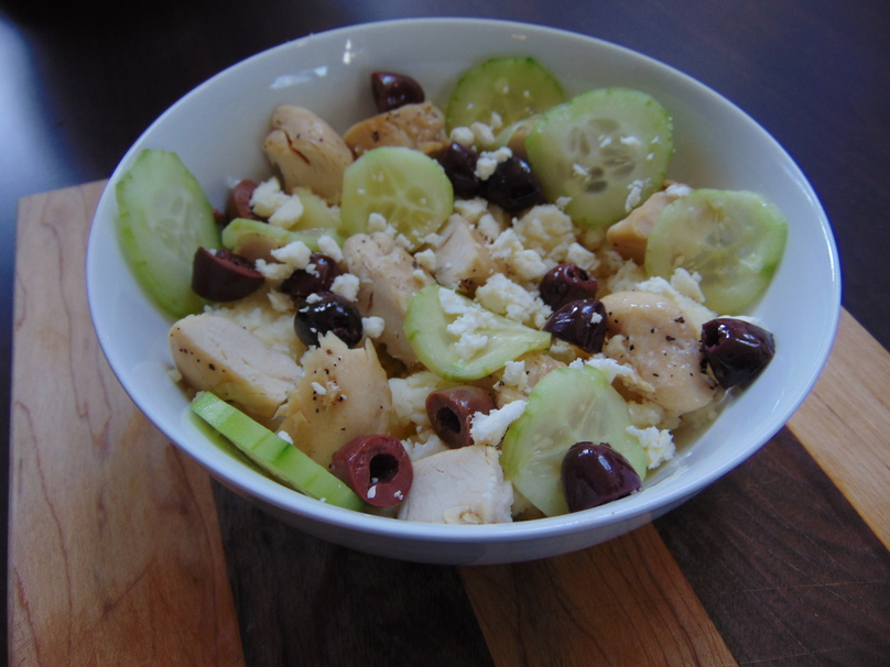 This salad was easy to make, and I had already bought most of the ingredients for my other salad recipes. Pan fry the chicken or meat substitute alongside the couscous, then mix with all the other ingredients. This salad can be eaten either warm or cold.