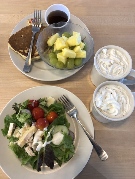 Brew strong coffee or fill 1/2 a mug with coffee from the dining hall. Fill the rest of the mug with your warm milk and pumpkin mixture and top off with whipped cream.
