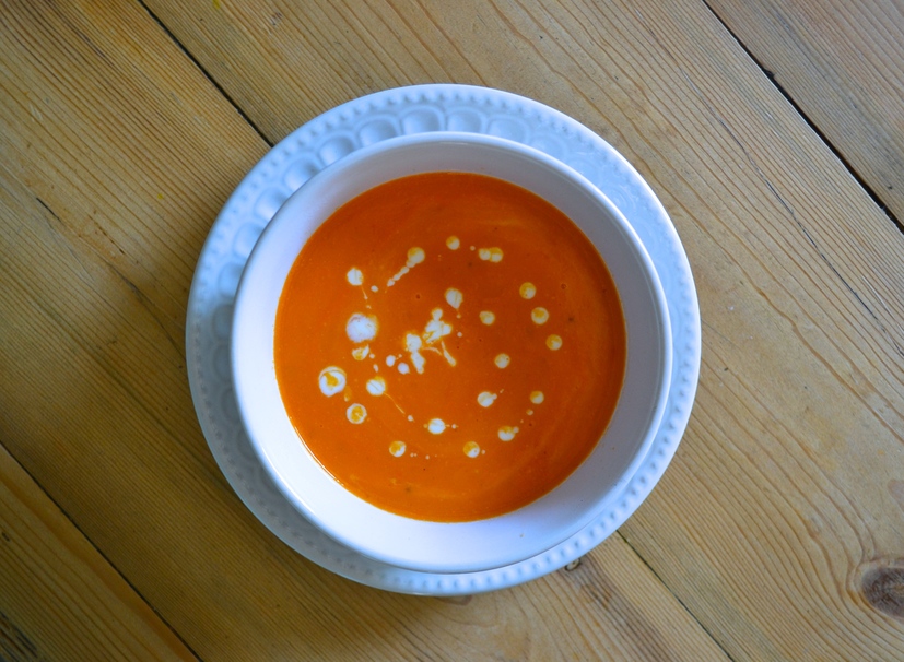 This recipe involves pre-roasting vine tomatoes, along with red chilli, garlic, and vitamin-C-laden bell pepper. The result is a lightly spiced and all-round delicious soup that satisfies savoury cravings while ticking a few boxes for your five-a-day. If you happen to have a summer cold, this should also kickstart your immune system and leave you feeling brighter. As an optional extra step, add single (or soya) cream to your blended soup for a more subtle flavour and a less intense kick. This is a great way to use up leftover tomatoes and the final product works well as a starter or a main dish.