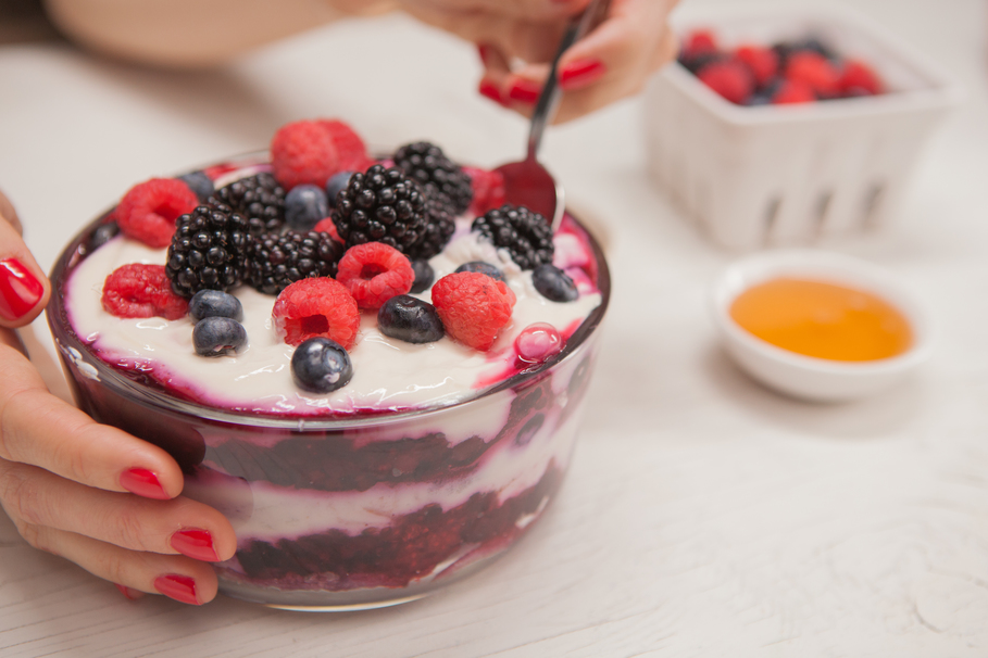 If you've scrolled this far, then we know you value dessert as much as we do. The key to having the foods you love often, like dazzling fruity desserts, is by building balanced meals using easy-to-make recipes with fruits, vegetables, whole grains and/or low-fat dairy. Cough, cough — ladyfingers, Greek yogurt, and berries.