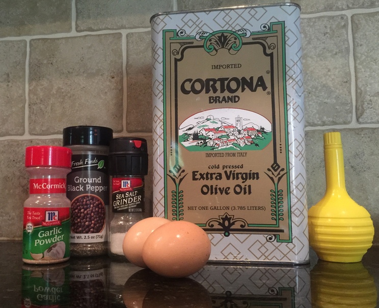 Separate the yolk from the rest of the egg add only the yolk to the lemon juice, garlic powder, salt, and pepper. Vigorously whisk the mixture with a fork for 1 minute.