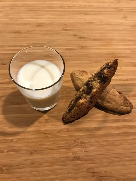 Biscotti is usually enjoyed dipped in hot coffee, but I decided to replace the anise extract with coffee extract (partly because I couldn't find anise extract at Whole Foods), and add dark chocolate chips, so this treat will surely give you an early morning wake up call even without the espresso.