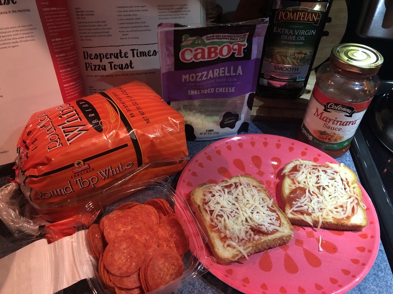 When I got my Spoon Cookbook in the mail, I couldn't wait to start trying recipes. I'll admit that while I am a foodie, cooking is not my specialty. So, I wanted to start easy. "Desperate Times Pizza Toast" was just that.