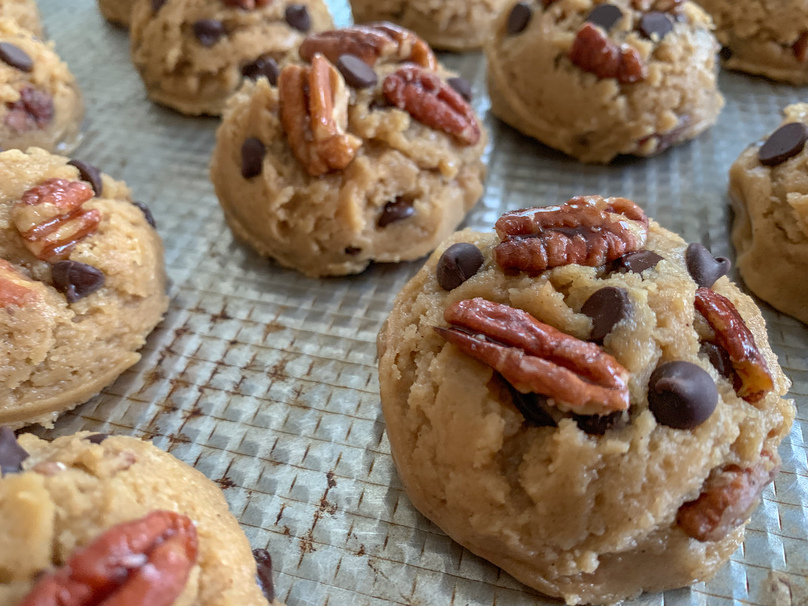 #SpoonTip: Leave out 1/2 cup of pecans and 1/4 cup chocolate chips and add those as a topping after forming your cookies.