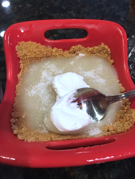 Since I am the only one in my family who really likes this dessert, I made a mini version. With some type of mini square dishes, you can make two mini key lime pies with this recipe.