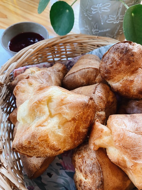 These popovers are light, airy and can be easily filled with jam, butter, or anything you have in your fridge! They can be either paired with sweet or savory items, and they will always taste delicious.