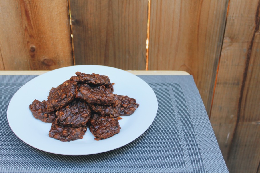 Use a large spoon to place cookie mixture onto a baking sheet. Cookies should be 2-3 inches big and there should be a 1 inch gap between each cookie. You should have 12-15 cookies.
