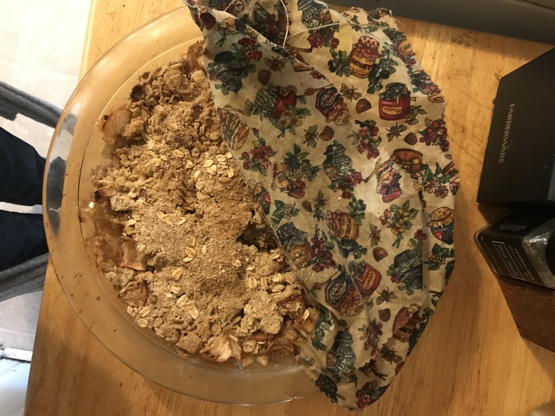 To make the filling, combine all the ingredients in a separate bowl and mix together until everything is crumbly but still holding together a bit. Sprinkle over the apples, try to cover the entire top. To make vegan, substitute butter with a dairy free version, I used an olive oil based butter. To make gluten-free, use gluten-free oats and flour. I used Trader Joe’s’ GF rolled oats and Bob’s Red Mill GF baking flour.