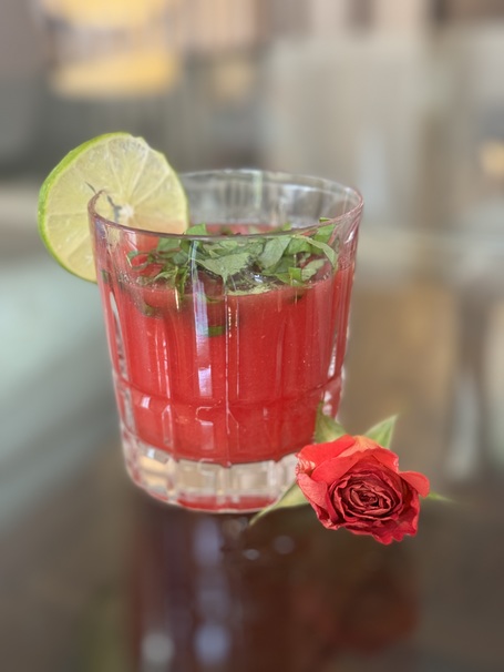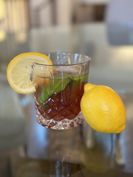 My herb garden, in particular, is booming right now, so thyme, rosemary, mint, and oregano have found their way into my dressings, marinades, rubs, salads, ice creams, entrees, and desserts. This week, however, I have experimented with refreshing cocktails and mocktails to help me not only beat the heat in style but also help me make a decent dent in my herb garden bounty. My favorite herbal ingredient is my Italian basil, which takes me directly to the Amalfi coast when I close my eyes.
