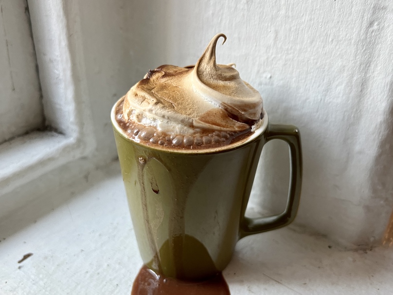 Turn the oven on broil. Swirl a 1/4 cup of the marshmallow mixture onto an aluminum-lined baking sheet, one swirl per serving of hot chocolate. Broil until golden. Alternatively, use a torch. Place on warmed hot chocolate and enjoy.