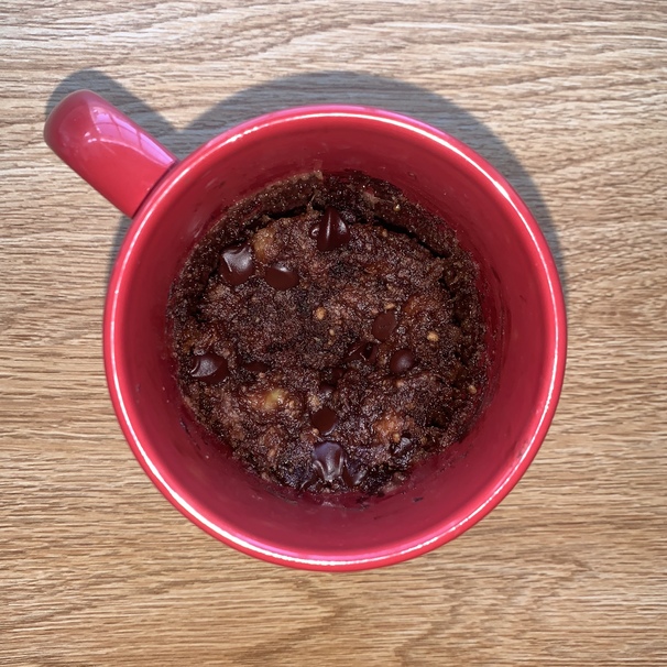 Now it’s time to bake the cake. Cook time will vary based on the dimensions of your mug and strength of your microwave. Start with 1 minute, microwaving the cake uncovered, and then check the doneness. From there, microwave the cake in 30 second intervals, checking it each time. Your cake is done when the top is just firm to the touch and the edges have slightly pulled away from the mug. If you want a gooier, brownie consistency, you can cook it for less time. Be careful removing it from the microwave-- it will be hot!