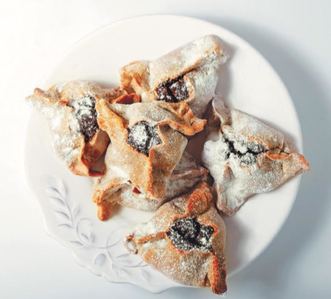 Bake for 20 minutes until the hamentashen are golden brown on the edges, then remove and cool for 20 minutes. Dust the hamentashen with powdered sugar and plate them. You can store them in an airtight container for up to 5 days and eat them (but you'll probably have eaten all of them the second they came out of the oven)!
