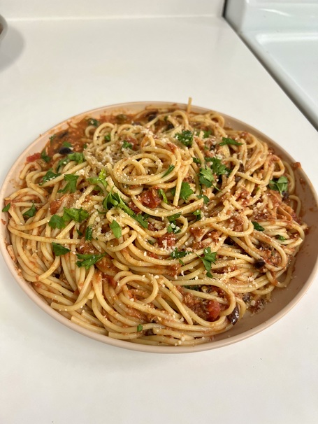 For thirty years, Pasta Puttanesca has remained a nightly staple in my household; always there after a long day of school, work, practice or rehearsal. Now, as a college student, it remains one of my to-go comfort foods when I need a meal in a pinch.