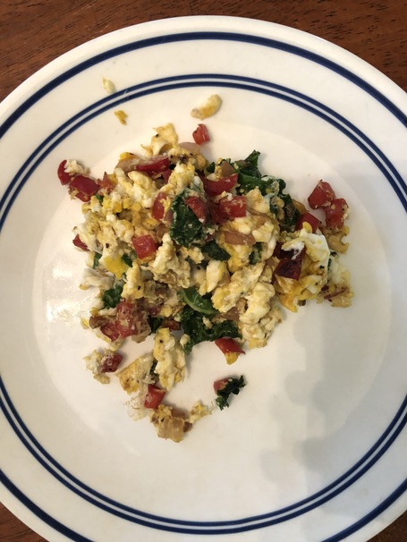 Once the eggs are cooked, take them out of the pan and enjoy. This is a base recipe for my moderation of scrambled eggs, but you can definitely mix it up with other vegetables or add toppings like cheese or my personal favorite for eggs, hot sauce.