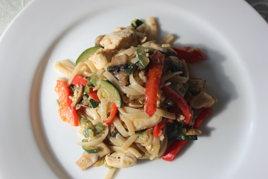 Pad Thai is one of my absolute favorite dishes to get when I order takeout. After ordering it for the thousandth time, I thought: why can't I make this myself? So I went searching for recipes and I stumbled upon this one from Delish. With a few tweaks in the sauce, oil and amount of vegetables, I fine-tuned the recipe and came up with this: