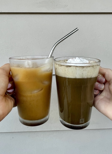 I was so excited to find this recipe, and it did not disappoint. This drink can be made hot or cold, but a warm Florida fall usually pushes me towards wanting an iced drink. The iced version of this could not get any easier: add all the ingredients to a mason jar, shake well, and enjoy! For a hot version, whisk the ingredients together in a pot and bring to a simmer. Coconut whipped cream is the obvious topping choice for either.