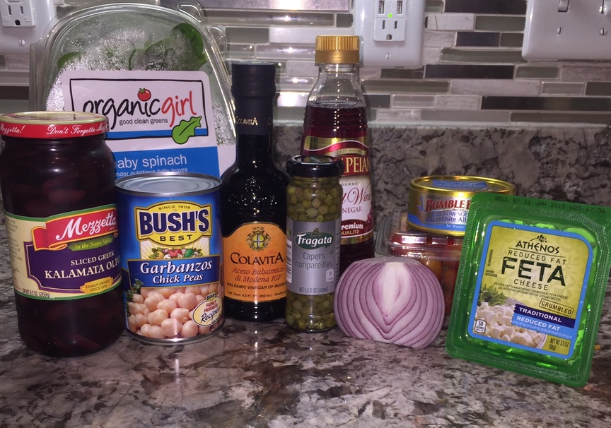 Combine all ingredients, except spinach, in a small bowl. Toss the tuna mixture in spinach or arugula. Save leftover tuna mixture in the refrigerator.