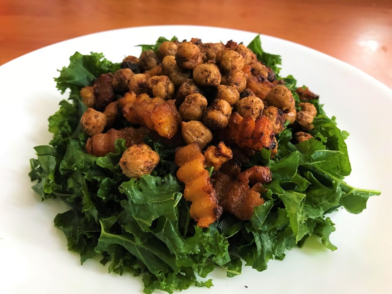 I have included the recipe for each component separately down below. To make the final kale salad simply place the massaged kale, squash, chickpeas, and dressing in a bowl and toss until everything is evenly coated in the dressing.