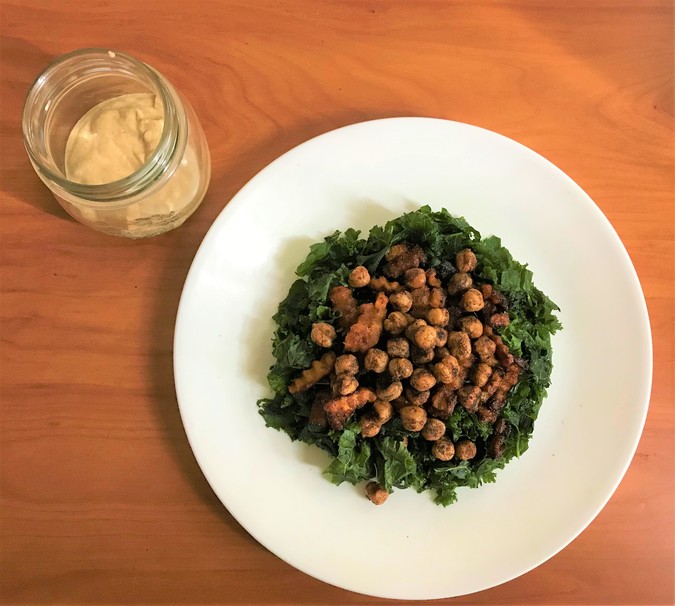 No. I wanted something that was creamy, had texture, and a little bit of a complex flavor profile. So the compromise I came up with between these two worlds was this caesar kale salad.