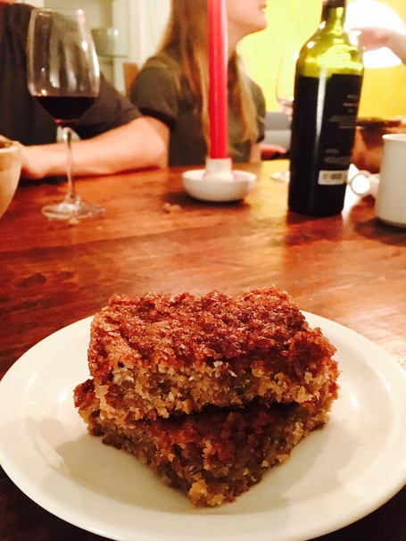 Place your cake in the preheated oven for approximately 25 minutes (depending on the depth of your pan. A brownie pan will take a shorter time than a cake tin for example—check with a fork to make sure it comes out clean when you poke the cake). Let the cake cool for 10 minutes before removing it and cutting it into slices!
