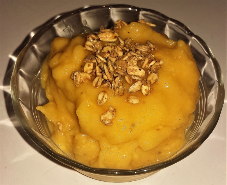 Add every ingredient to blender and process until smooth. Top with shredded coconut or granola. Tip: Add a handful of spinach to the smoothie maker for a nutritious energy boost!
