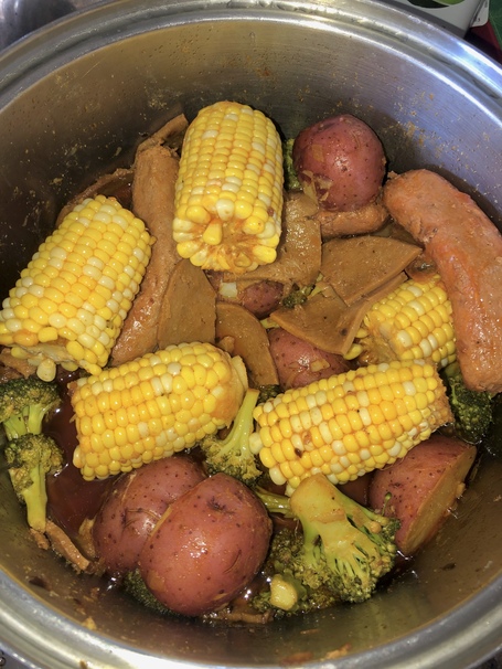 Dig in and Enjoy your vegetarian cajun boil!