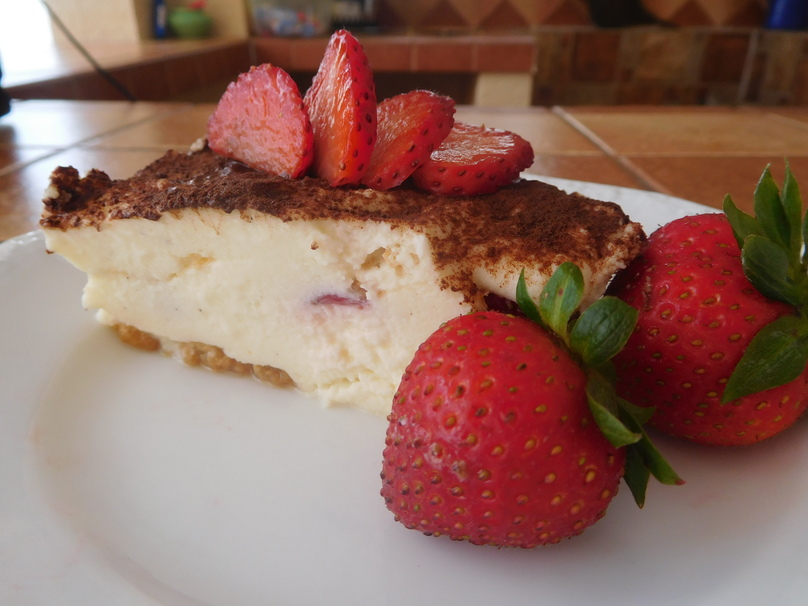 Put the mascarpone mixture on top, followed with a layer of strawberries.