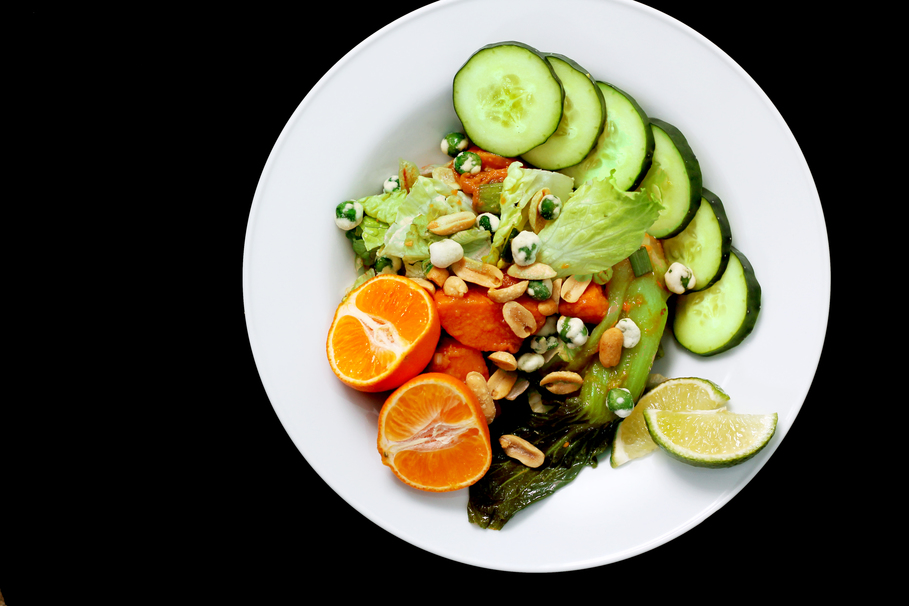 Maybe you don’t have baby bok choy, another sturdy green like swiss chard or kale would substitute fine in this case. If you want to bulk it up even more, blanched snow peas add snap and sweetness alongside the sweet potato. Serve with a sprinkle of scallions, it will make the dish pop and taste as fresh as it did the day you made it – yet the longer the ingredients marinade, the stronger the flavors get.